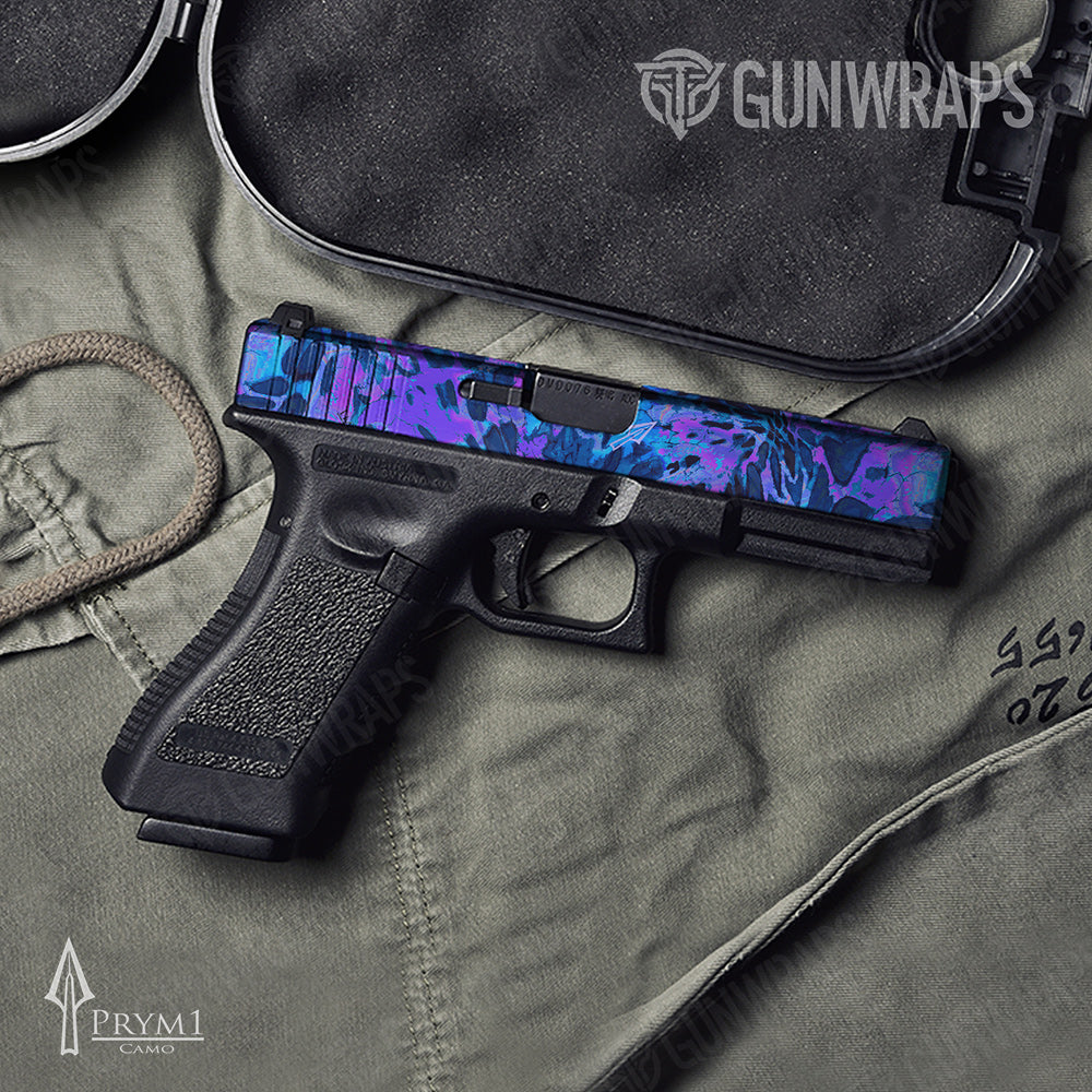 Prym1 Camo Pistol Slide Skins utilize organic fracture mapping and seamless scale geometry to create adaptive surface disruption across compact firearm components. Layered transitions minimize hard edges while preserving continuous pattern flow and controlled visual depth.